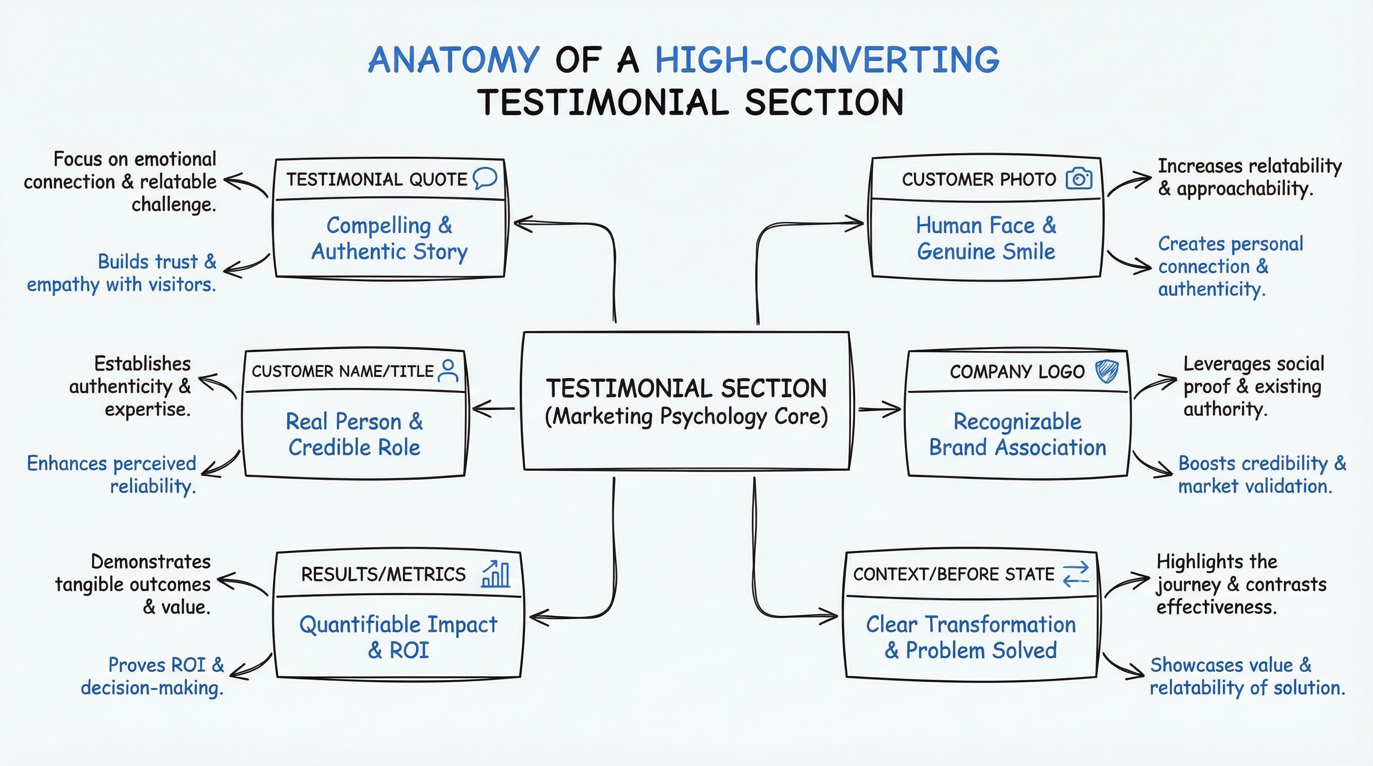 Use Social Proof: Incorporate testimonials, customer logos, case studies, or reviews to build trust and credibility. This social proof validates your offer in the mind of the visitor.