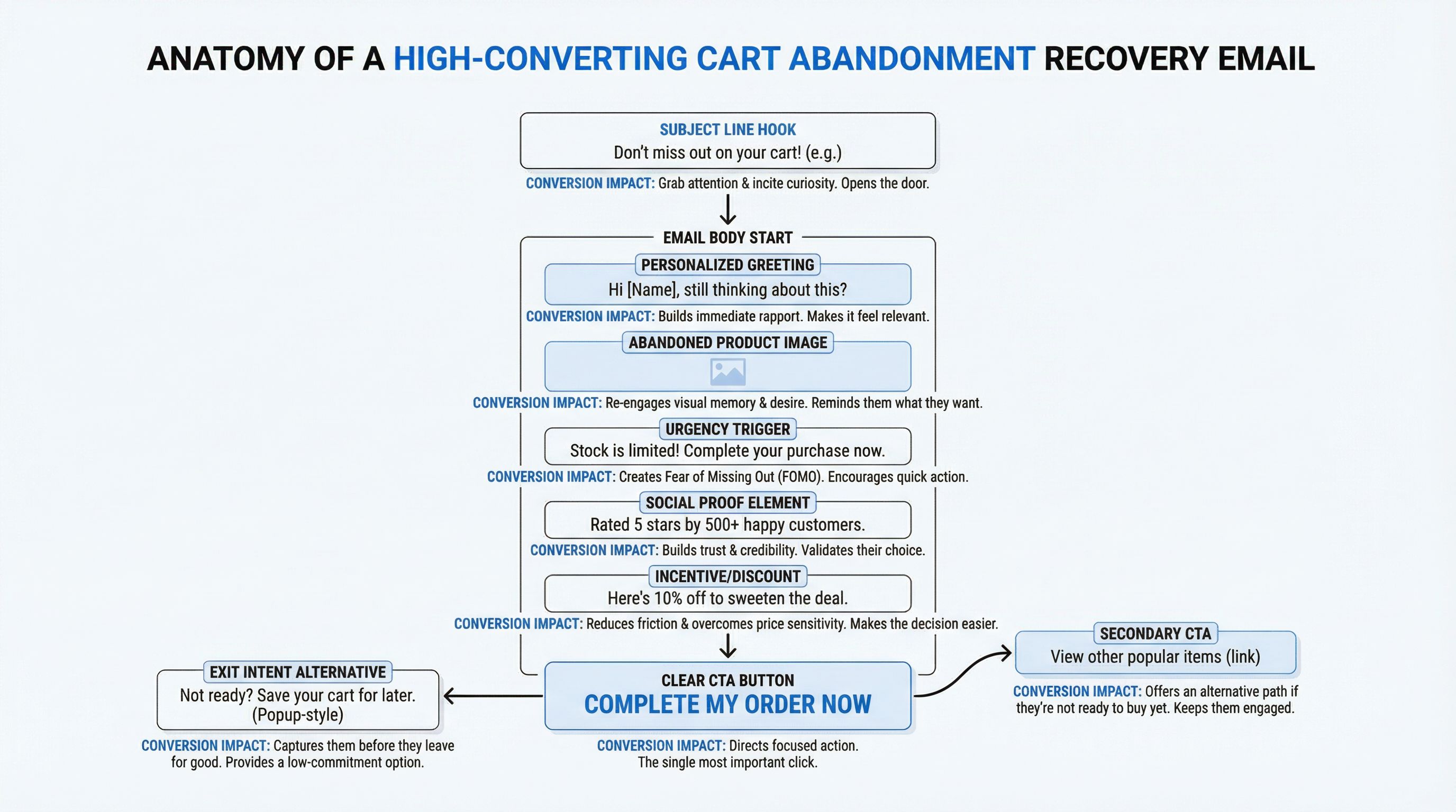 Simplify the Return Journey: Ensure your recovery emails link directly back to a pre-populated shopping cart, making the path to purchase as frictionless as possible. The goal is to remove any barriers that might have caused the initial abandonment.
